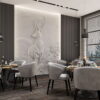 Interior Design: Kitchen – Counters – Tables – Wall Cladding – Living room – LCD Unit – Fireplace – Wall Frame – toilets – Entrance – Reception.